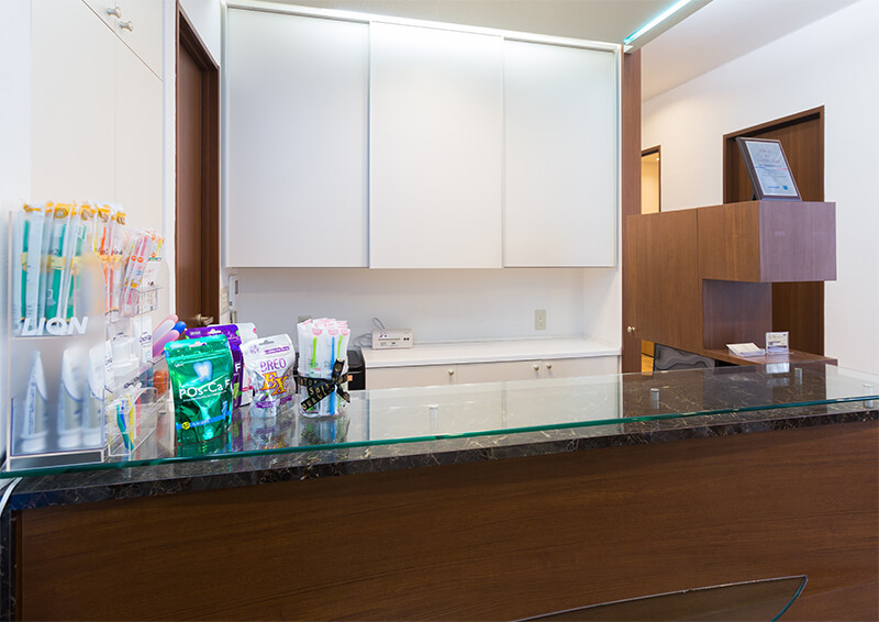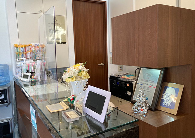 飛沫感染防止のため、受付カウンターに透明なアクリル板のボードを設置しています。