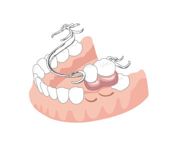 歯を失った部分の型を取って人工の歯を作り、ピンク色の床の上に取り付け、それ自体をご自身の歯にバネで引っ掛けるようにして装着します。